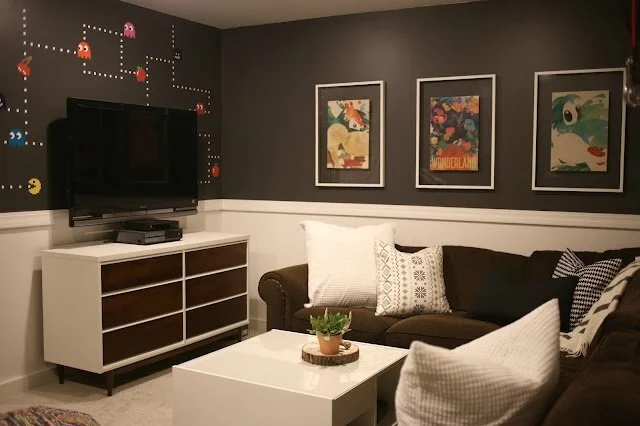 Putting art right on your wall is a great way to create something whimsical and immersive. The Divine Living Space created this super fun Pac Man themed wall that frames her TV and adds interest to what would have been a big, boring wall. Something like this can be achieved with vinyl wall decals or stencils and paint.