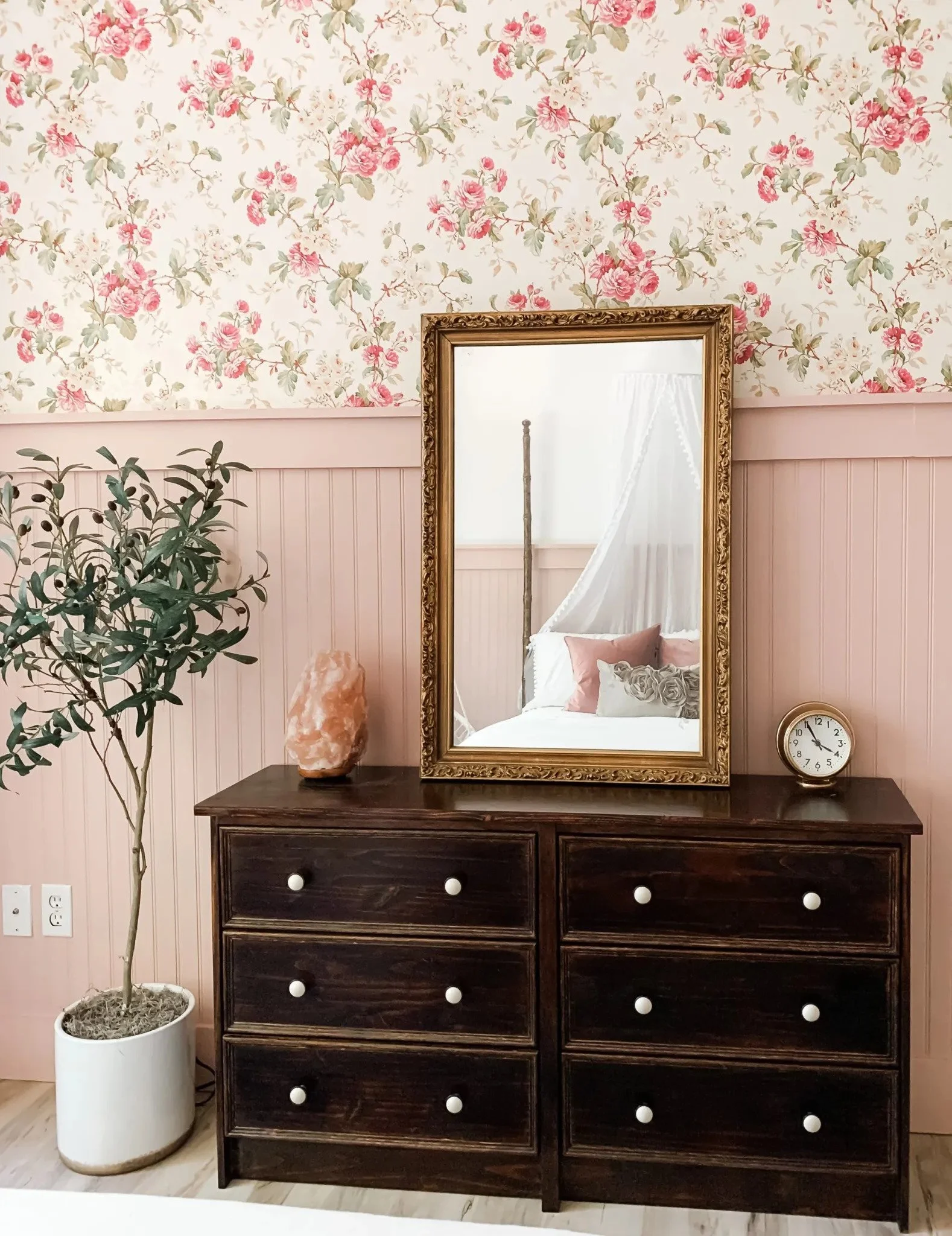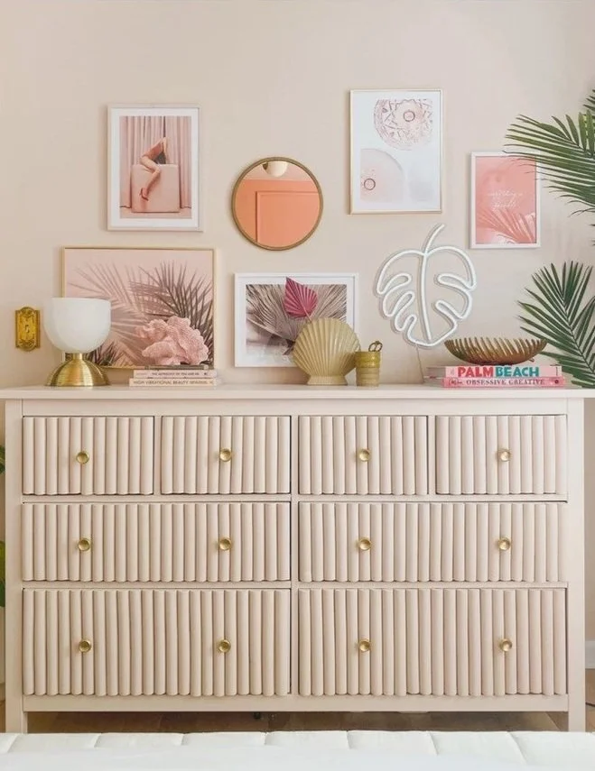 In addition to adding custom gold pulls, Erika of Peony and Honey painted her IKEA Hemnes dresser a beautiful blush pink, as well as gluing half round foam dowels to each drawer face to create this amazing fluted look. For an even more custom feel, she added wallpaper to the bottom of each drawer. The supplies for her very creative hack were inexpensive, and you’d never know this was an IKEA piece.