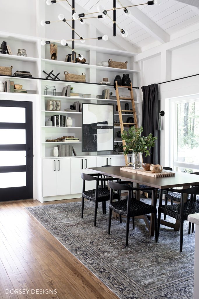 Here’s another absolutely incredible IKEA hack built-in by Sarah of Dorsey Designs for her living & dining room ORC project. The lower part of the built-in is IKEA Sektion lower cabinets, and built the shelving portion using plywood and Metrie facer boards. Mixing IKEA with custom DIY pieces is a great way to give your project a solid base while still creating something that fits your space exactly.