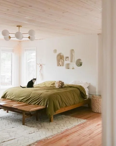 Minimalists, you can get in on styled ceilings, too. Whitney of Achillea Design Co used these boards to cover up popcorn ceilings. It elevates the space so much without adding anything flashy that’ll detract from the minimalist, natural vibe of the room.