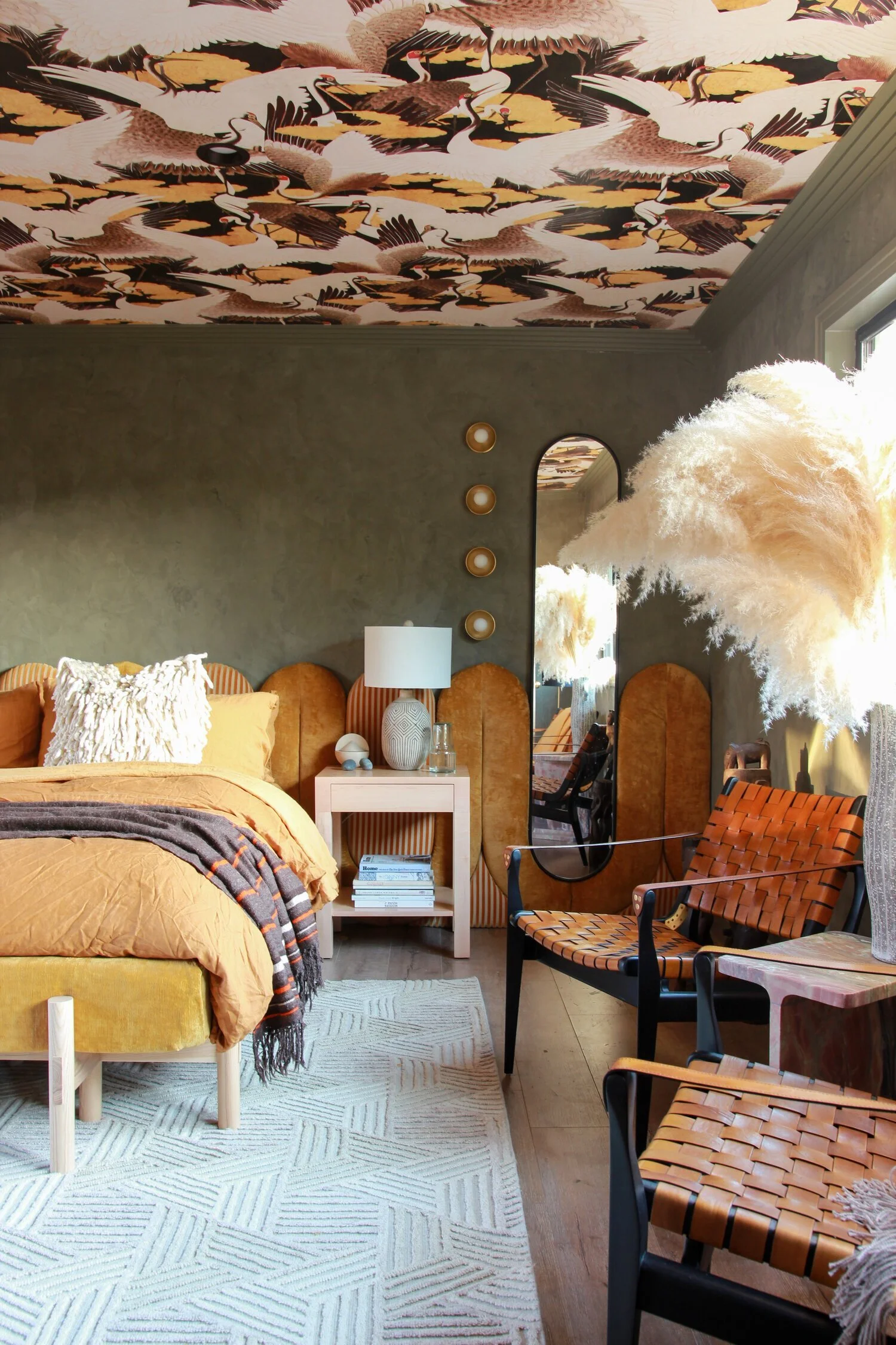 However, white ceilings are not the only option. In fact, there are a plethora of ways you can style your ceiling to create an incredibly unique impact in a space. A coat of paint or a fun wallpaper on the ceiling creates visual interest, adds character, and can make a room feel really special.