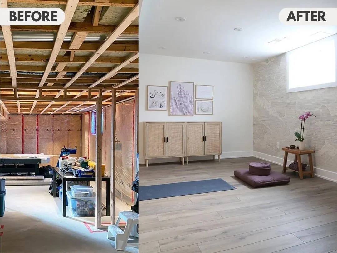 B&A: From Unfinished Basement to Perfect, Peaceful Yoga + Exercise Room