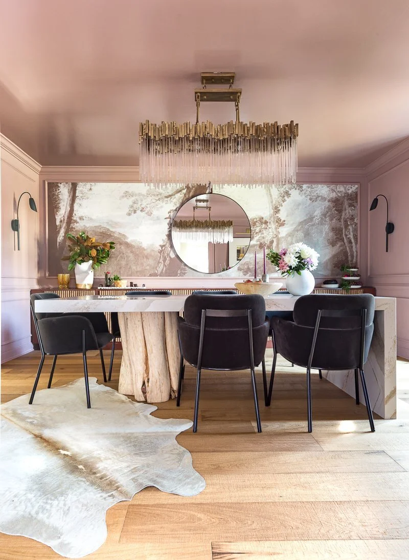 This dusty blush color is such a lovely backdrop for this dining room. It lets the other pieces shine, while setting a sophisticated tone.