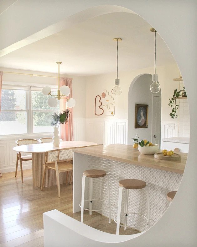 Yet another light pink and green combo— these colors are a match made in heaven. The subtle pink balances with the much darker green, while making the kitchen feel fresh, fun, and playful.