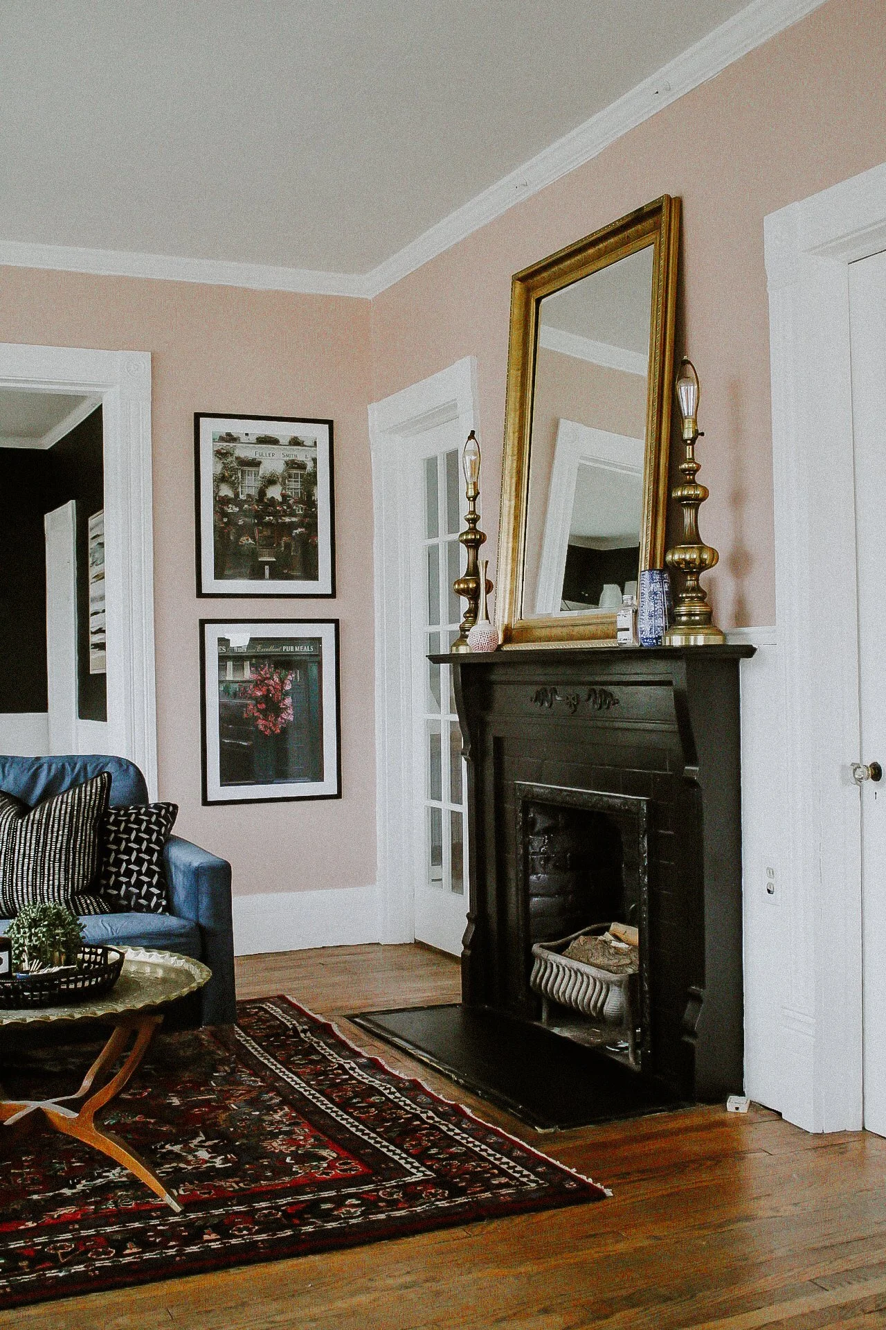 Light mauve walls were the perfect choice for this cozy, moody living room. It keeps the space feeling light and airy, but feels so much more warm and friendly than white or off-white would.