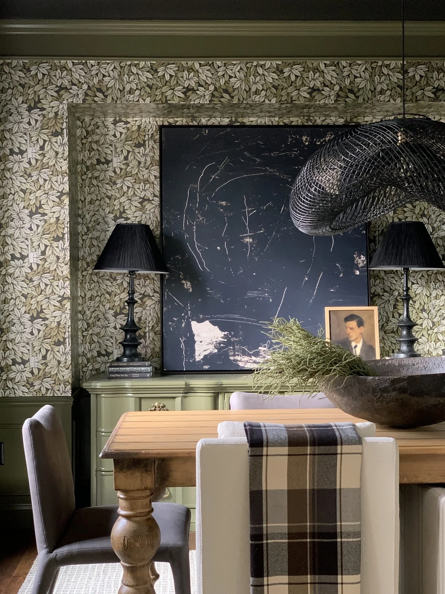 This means things like paintings or photos of nature, motifs that represent things from nature, natural materials like wood and stone, earth tones (specifically subdued tones of brown, green, and blue), and naturalistic shapes.