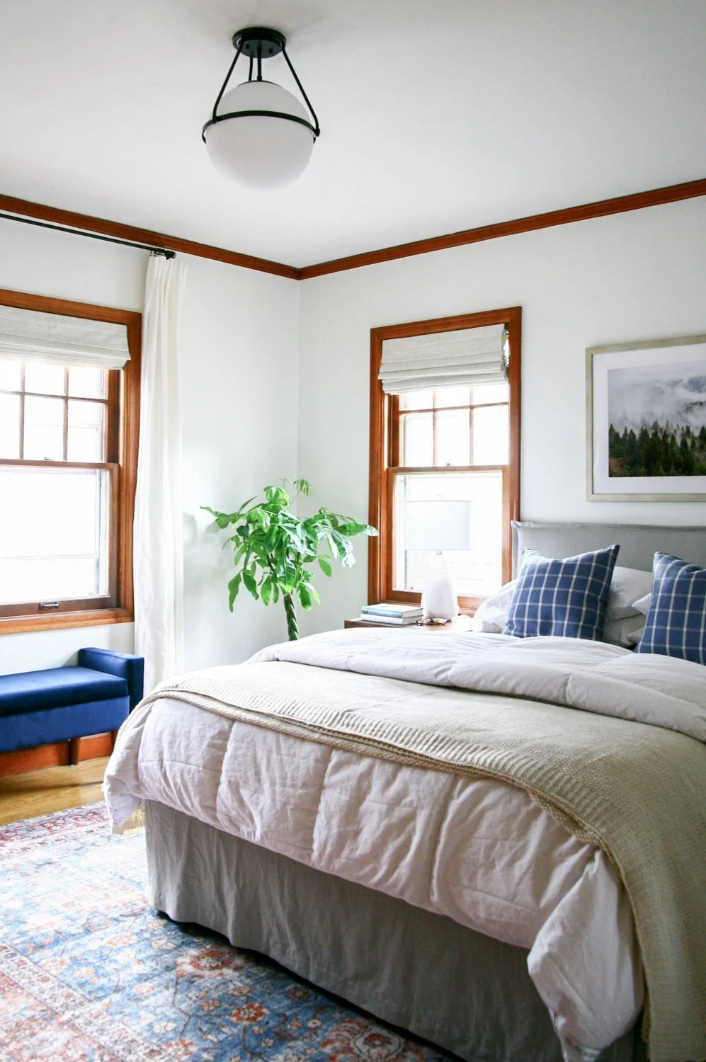 Here’s another space with the original wood crown molding and window casings left unpainted. It really heightens the cozy, cabin-y vibe of the space.