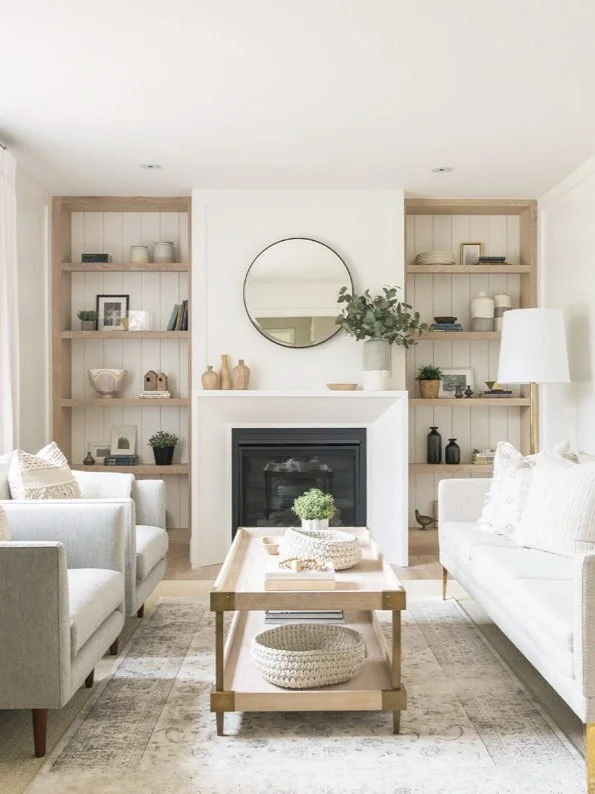 In such a subtle, minimalist space, light toned wood can bring in the right amount of texture and warmth without killing the neutral vibe.