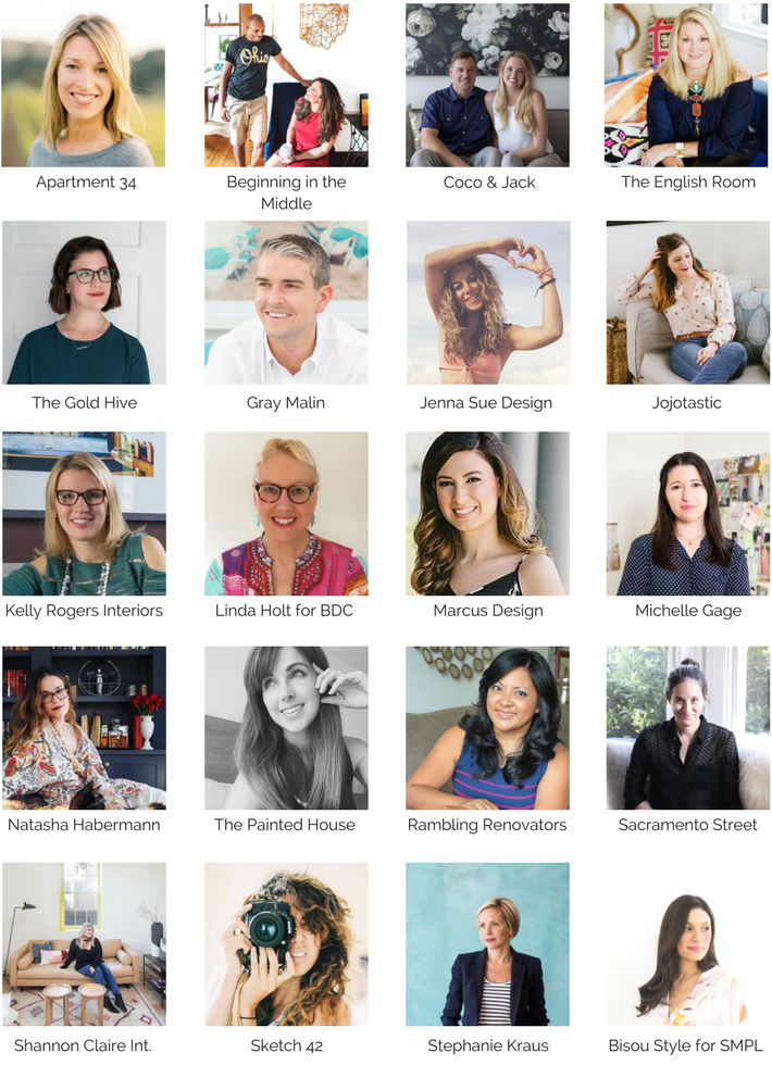 Apartment 34 | Beginning in the Middle | Coco & Jack | The English Room | The Gold Hive | Gray Malin | Jenna Sue Design | Jojotastic | Kelly Rogers Int. | Linda Holt | Marcus Design | Michelle Gage | Natasha Habermann | The Painted House | Rambling Renovators | Sacramento Street | Shannon Claire | Sketch 42 | Stephanie Kraus | Bisou Style